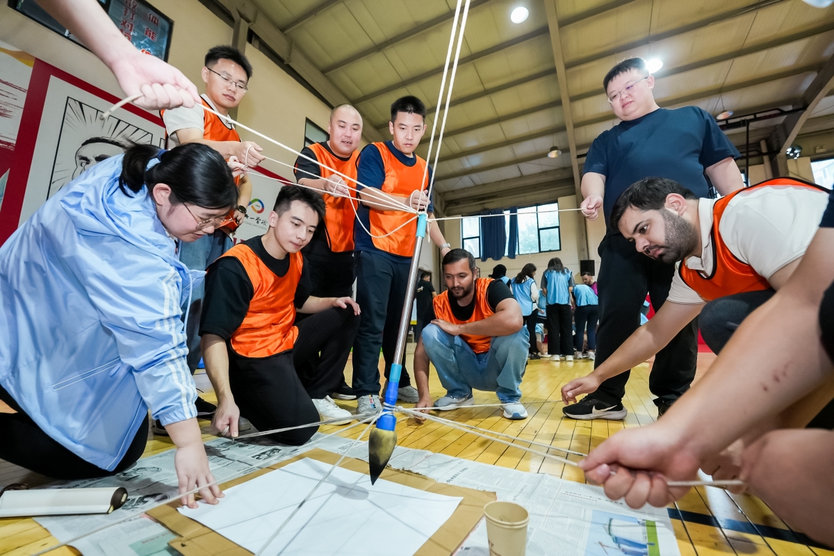 在熱身及破冰后,現場人員分為三隊,依次開展了美式沙包挑戰賽、移花接木和書寫春秋三個趣味團建項目,各隊成員默契配合、互相鼓勵,展現了良好的團隊精神和競技風貌。活動最后,境外員工分享了個人的體會感受。他們紛紛表示,通過此次團建活動,更真切感受到自己是三峽國際大家庭的一員,通過在總部兩個月的輪崗,更深入地了解了三峽的管理文化,與總部建立了更緊密的聯系,他們將在今后的工作中繼續努力,共同鑄就三峽國際更美好的明天。